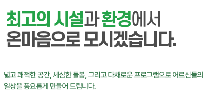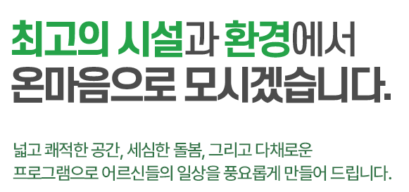 넓고 깨끗한 환경과 최신 설비로 어르신의 편안함을 우선합니다.